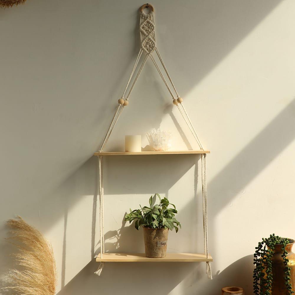 Macramé Hanging Floating Shelf – 2 Tier